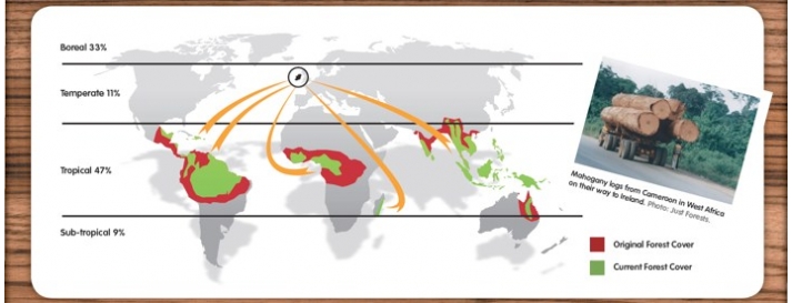If a logging contractor does the same thing in Tanzania, or the Amazon, and gets the wood to Ireland, they're home free. Same thing if they sell the logs in China and the mahogany, teak or bintangor, ends up in furniture in the ‘Furniture Heaven Shop’ in Tullamore or plywood in ‘McCarenot Timber Supplies’ in Bray. Illegal trade is one of the huge stories that has being ignored by industry, politicians, many governments and the mainstream media for too long. More than half of all tropical deforestation is estimated to be the result of illegal logging, and deforestation is causing 20% of total global CO2 emissions.
